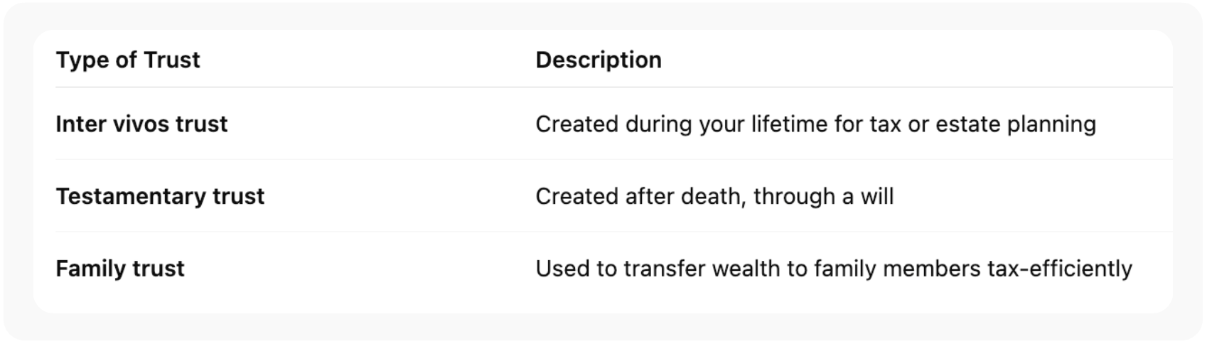 A trust is a legal entity managed by a trustee who holds assets for beneficiaries. The trust document defines its purpose and rules.